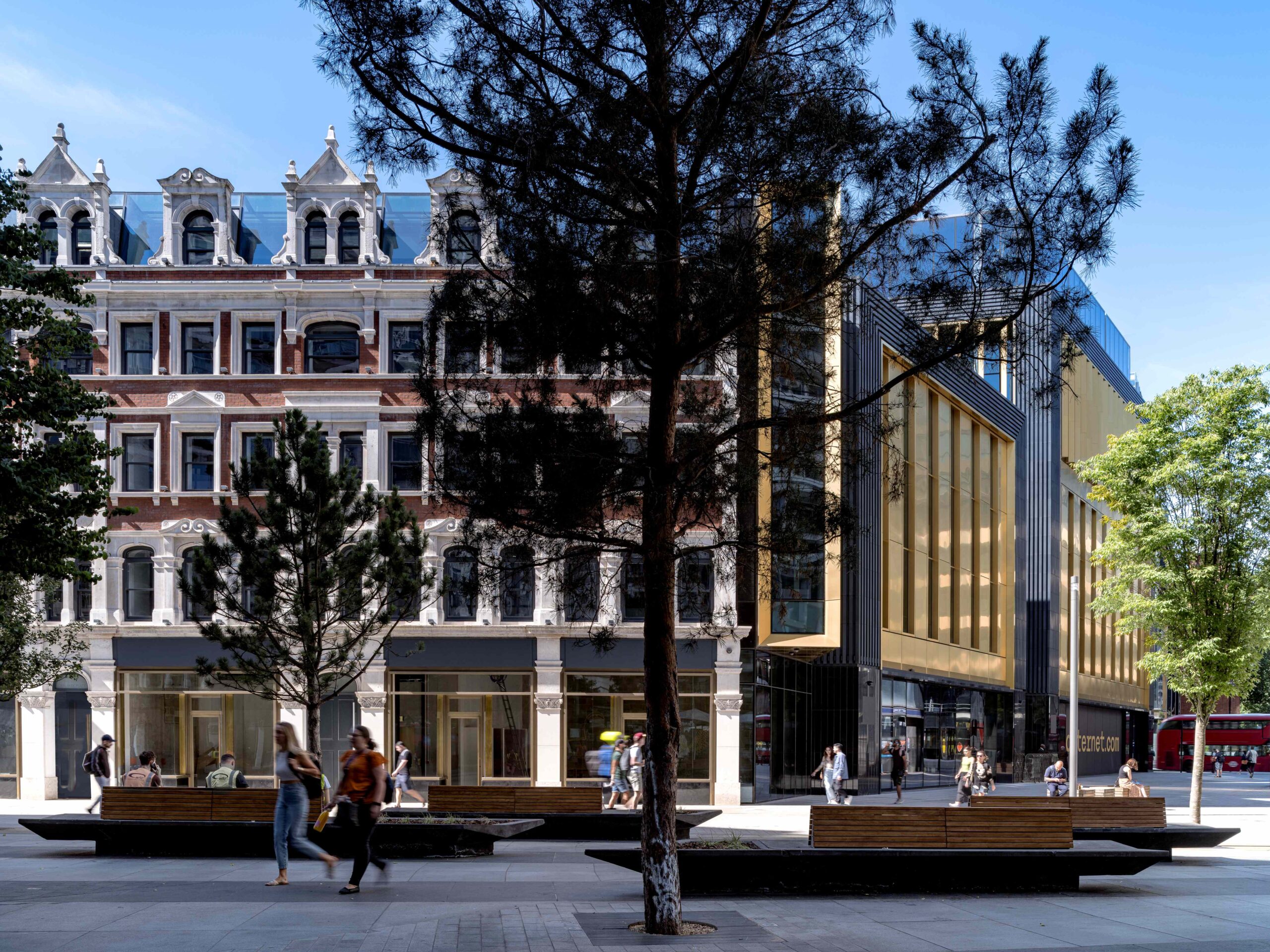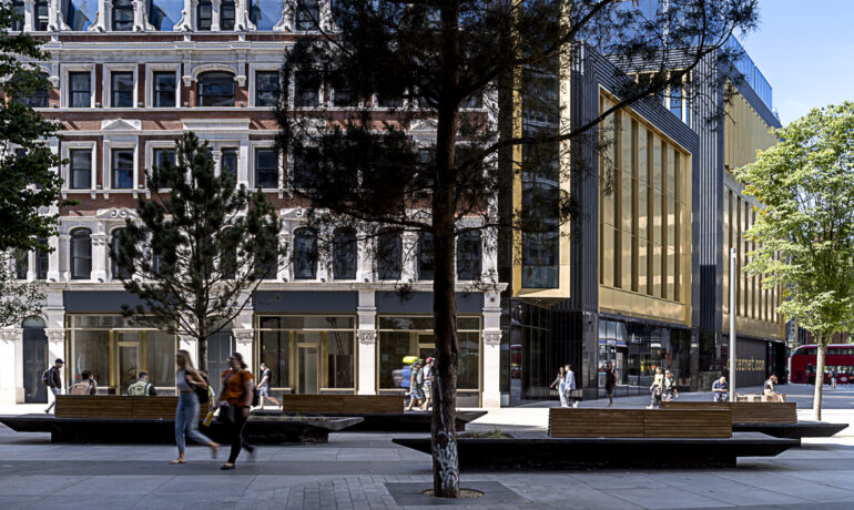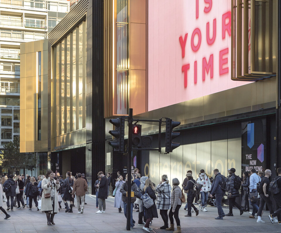 At St Giles Circus in London’s West End, our landscape design for The Outernet transforms a once-congested interchange into a dynamic cultural destination, where immersive digital screens, a major music venue, and public life converge.